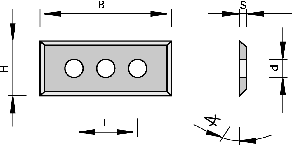 181982 - Turnover Knives HW with 2 cutting edges, end sharpened - 3 holes